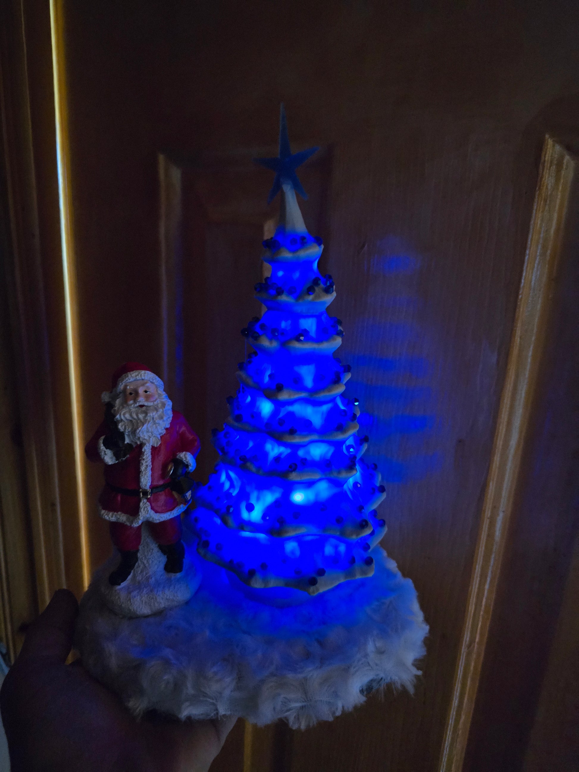 Blue Christmas Tree. Made Of Porcelain Blue Beads And Blue Lights. 11 By 7 Inch