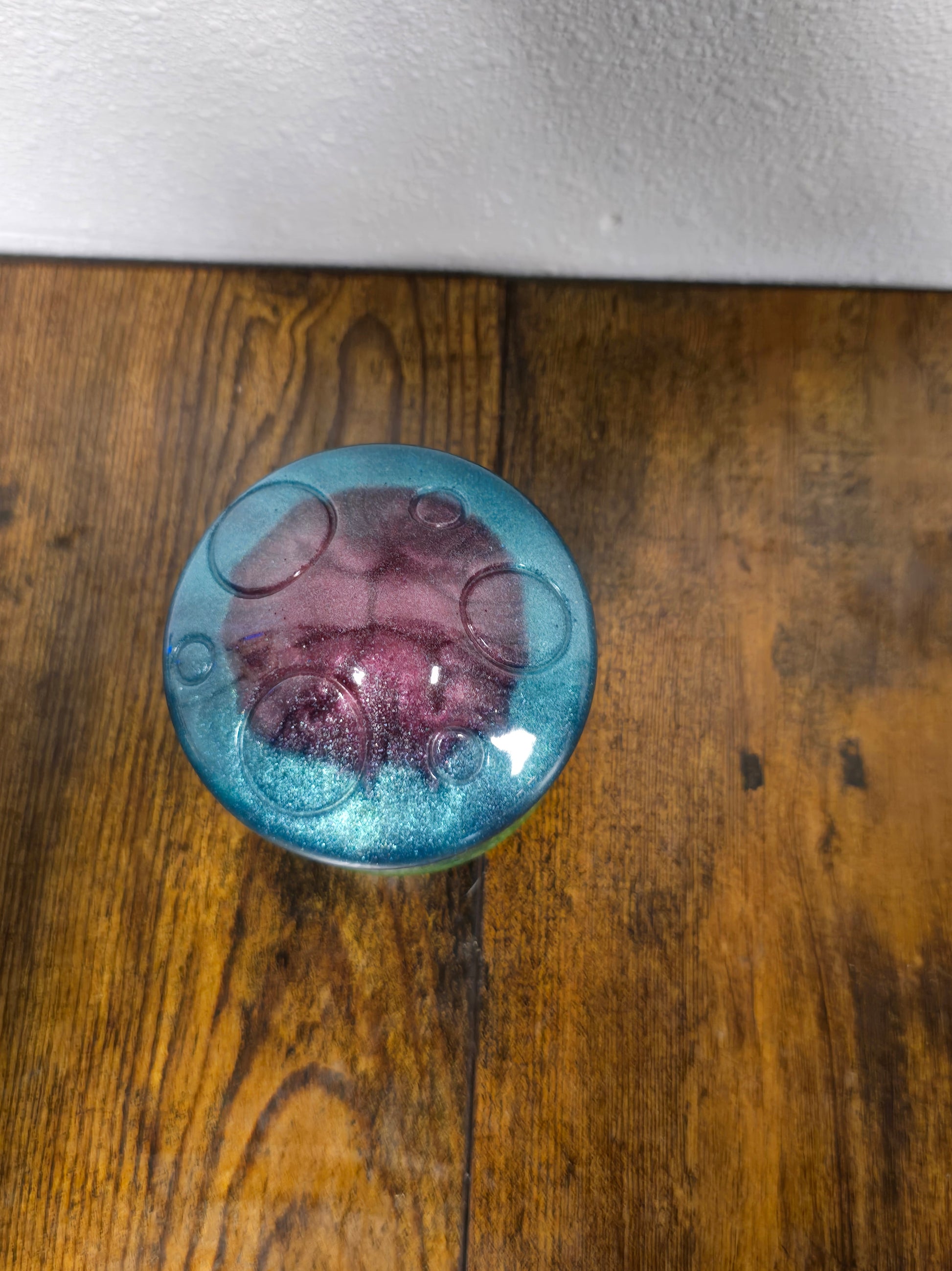 This handmade resin mushroom features a hollow base, making it perfect for all kinds of storage or hiding small items. The multicolor design adds a fun and unique touch to any crafting project. With its versatile use and eye-catching appearance, this resin mushroom is a must-have for craft enthusiasts looking to add a touch of whimsy to their creations.