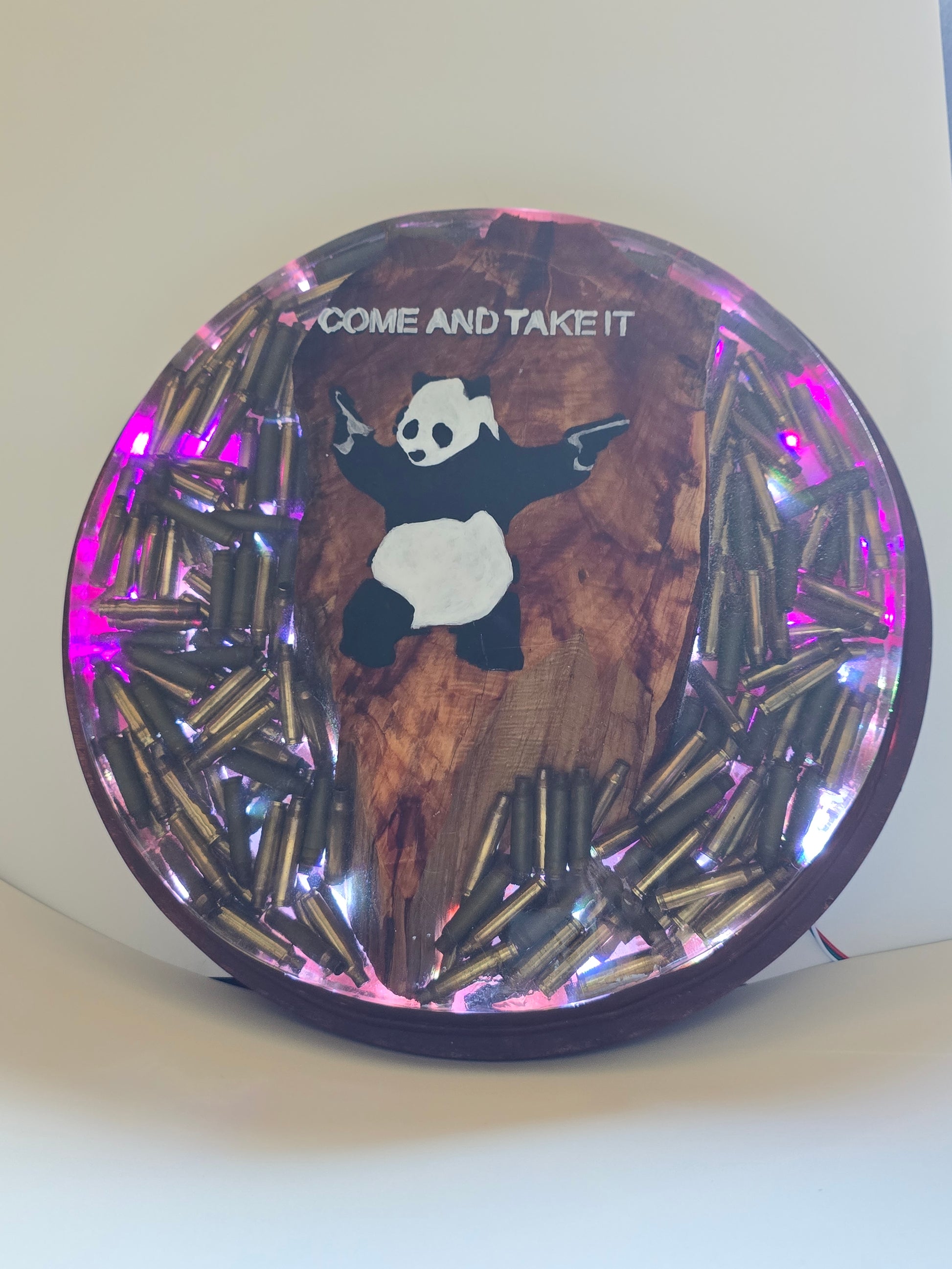 This Wall Hanging Decor is a unique and handmade piece that combines natural elements like wood, bullet shells, and resin to create a beautiful and intricate design. The added feature of it lighting up and being controlled by a remote gives it a modern and stylish touch. Perfect for adding a personalized touch to any home décor setting, this wall hanging is a standout piece that adds a touch of nature and artistry to any space. Perfect for those who appreciate handcrafted and finished pieces.
